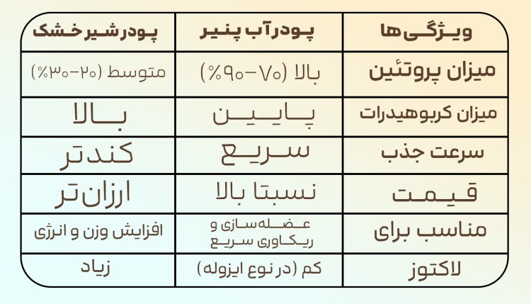 جدول مقایسه پودر آبپنیر و پودر شیر خشک