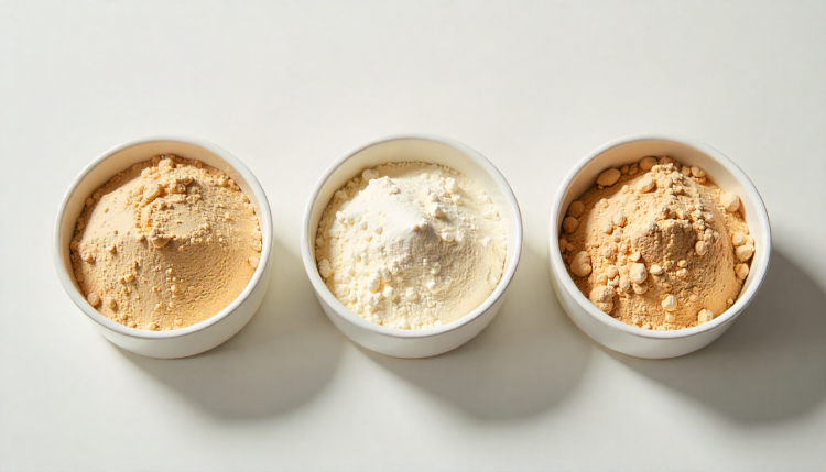 پودر پروتئین سویا: یک پروتئین گیاهی است که از دانههای سویا تهیه میشود. پودر پروتئین سویا برای گیاهخواران یا کسانی که به لاکتوز حساسیت دارند مناسب است.